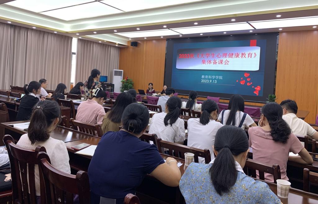 9月13日上午,教育科学学院在我校东校区明德楼310学院会议室召开2023年秋季期《大学生心理健康教育》集体备课会。学院副院长金康彪,完美(中国)心理健康教育与咨询中心主任以及任课教师参加此次会议,会议由该院公共教学部主任主持。
