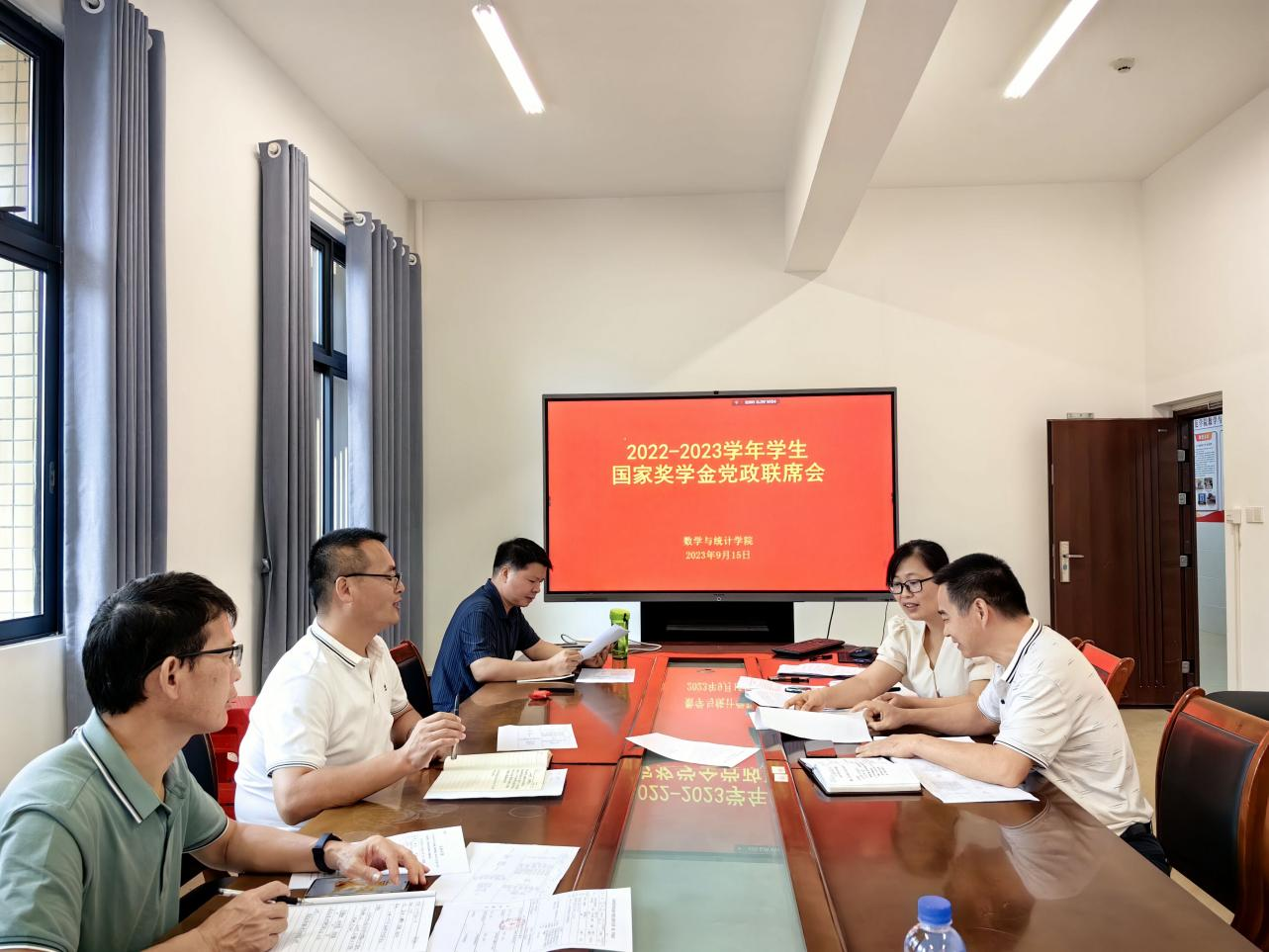 为了切实做好国家奖学金评审工作和对家庭困难学生进行评议和认定工作。9月15日,数学与统计学院于我校东校区新民楼C408室召开2023年家庭经济困难学生认定暨国家奖学金评选会议。会议由学院党委副书记李秀英主持,全体班主任参会。