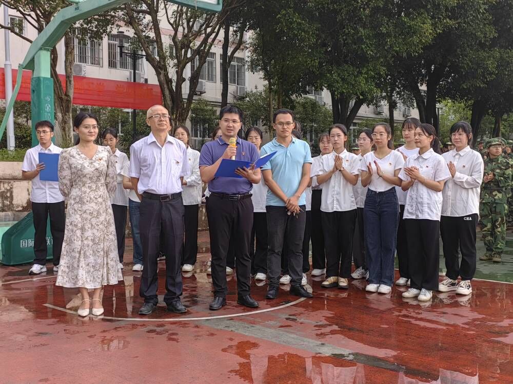 9月17日下午,生物与制药学院党委副书记兼副院长蒋德旗、党委专职组织员赖兴珲、辅导员及全体学生党员前往该院2023级新生军训场地,为承训教官和参训学生送去诚挚关怀及亲切慰问。