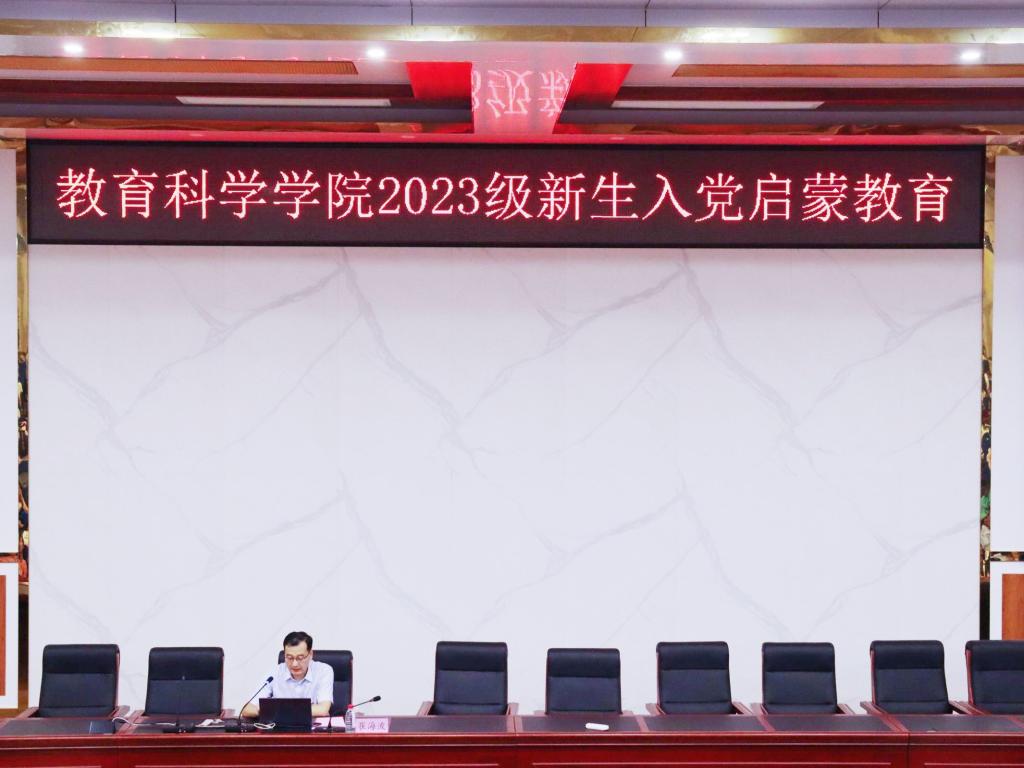 为做好新生政治引导和入党启蒙教育工作,有效提高新生的思想政治觉悟,教育引导广大青年学生积极向党组织靠拢,9月26日下午,教育科学学院于我校东校区新民楼D101会议室举办扬帆起航,青春向党——2023级新生入党启蒙教育讲座。本次讲座由该院党委书记崔海波主讲,该院2023级全体新生到场参加。