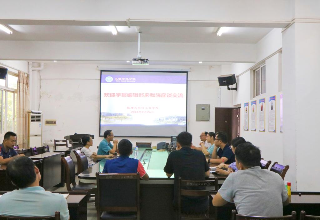 9月26日下午,学报编辑部主任唐世纲一行到物理与电信工程学院调研交流,该院副院长韦艳芳及教师代表共同参加调研座谈会。