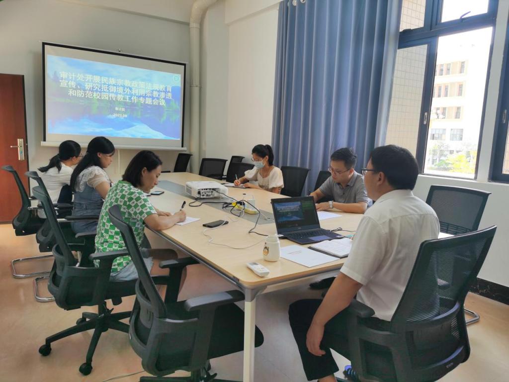 9月27日下午,审计处在新民楼A209会议室召开抵御和防范宗教渗透工作专题会议及政治理论学习会。会议由副处长陈子兴主持,审计处全体人员参加了会议。