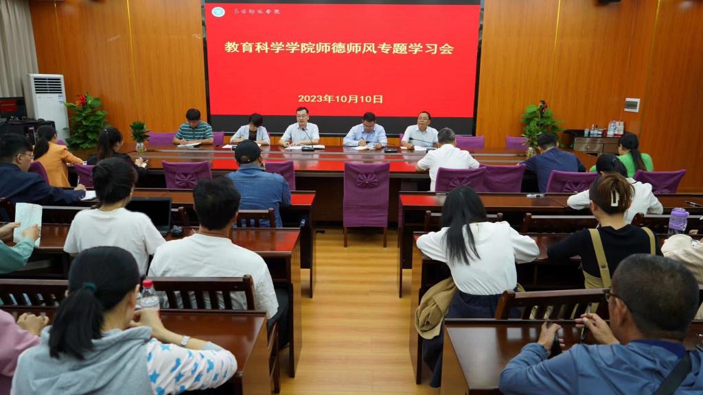 为进一步加强教师队伍师德师风建设,10月10日下午,教育科学学院于我校东校区明德楼310学院会议室召开师德师风专题学习会,本次会议由该院党委书记崔海波主持,该院领导班子成员,全体教职工参加此次学习会。