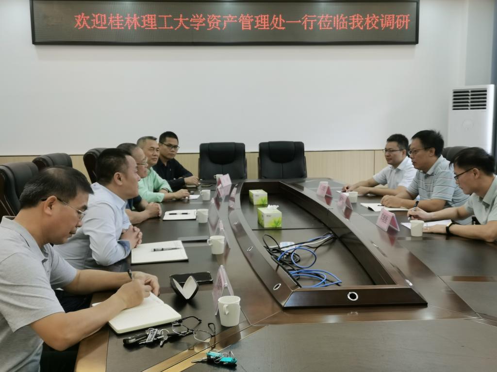 10月13日上午,桂林理工大学资产管理处处长伍飞军一行3人到我校调研,我校国有资产管理处、物理与电信工程学院、后勤基建处等部门有关负责人参加调研座谈会。