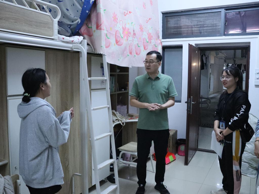 搬迁宿舍当晚,学院领导班子成员到东西区学生宿舍进行走访慰问,仔细察看宿舍各项基础设施、环境卫生、用电安全等情况,与学生进行亲切交谈,了解实际需求,了解学生困难,同时鼓励学生快速适应新环境,全身心投入学习中去,并对未搬迁留在西区的学生进行亲切的关心慰问,对于领导、教师的关心,以及学院提供的帮助,学生表示十分感谢。