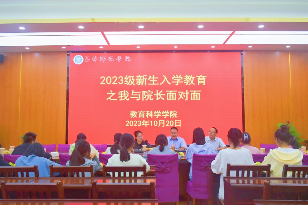 为加强师生之间的沟通,拉进师生间的距离,让2023级新生更好、更快适应与融入大学生活,10月20日下午,教育科学学院在我校东校区明德楼310学院会议室召开2023级新生入学教育之我与院长面对面座谈会。本次座谈会由该院团委书记主持,该院院长陈庆文,副院长谢清理,新生代表参加。