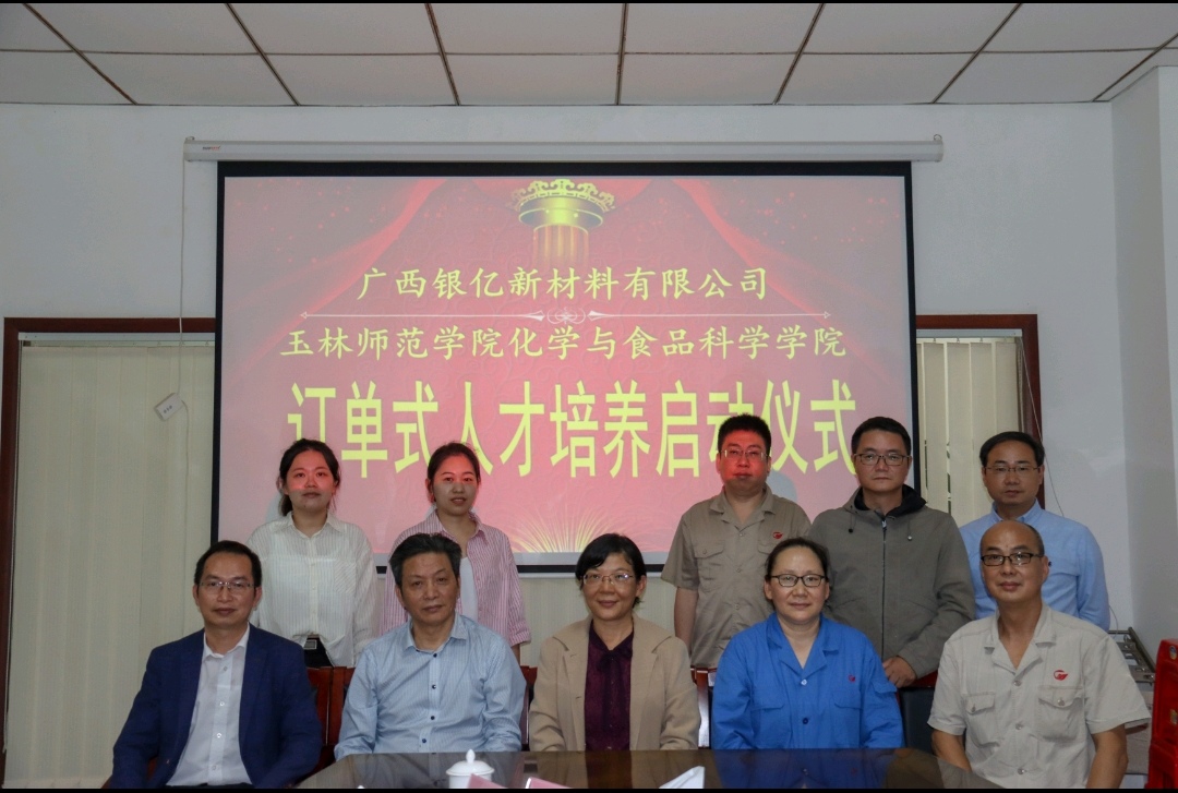 为了推进产教融合协同育人,2023年10月20日,化学与食品科学学院谭明雄院长一行,赴广西银亿新材料有限公司参加“订单式”人才培养启动仪式。