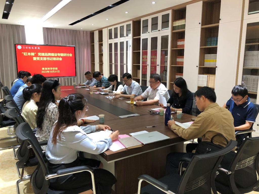 10月31日,教育科学学院于我校东校区明德楼408会议室召开“红木棉”党建品牌建设专题研讨会暨党支部书记培训会,该院党委委员、党建专职组织员、各党支部书记、民主党派、教师代表参加此次会议,会议由该院党委书记崔海波主持。