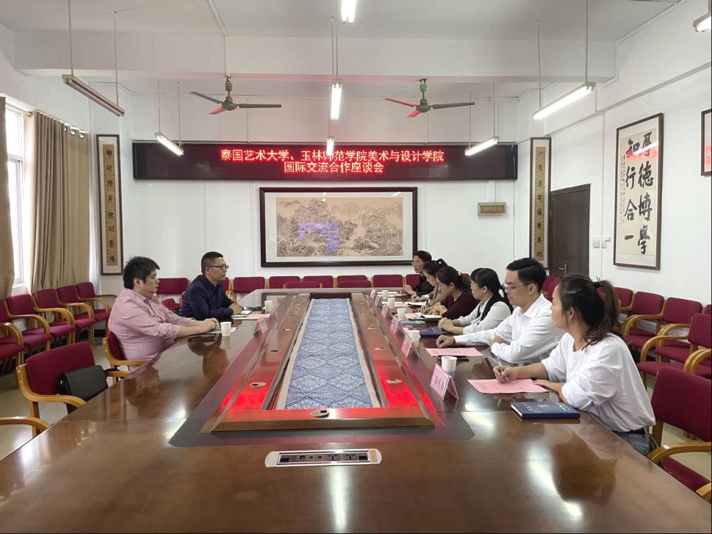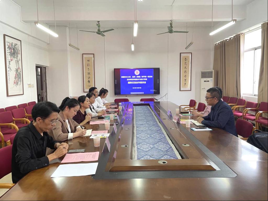 10月30日下午,泰国艺术大学国际事务部主任赵世欣一行到我校美术与设计学院交流学习,并于我校东校区博学楼3-407会议室召开国际交流合作座谈会。该院党委书记黄培英、副书记严耀燕,国际交流处相关负责人及教师代表参加座谈会。
