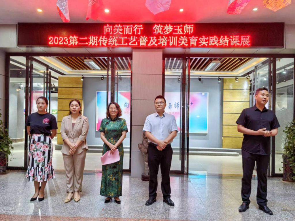 开幕式上,王易萍对施教教师的辛勤付出表示感谢,也对本期全体学员的学习成果给予肯定和赞许。她指出,传统工艺是中华民族瑰宝的重要组成部分,是承载历史记忆和文化传承东珍贵财富,此次实践活动通过“理论讲授+作品赏析+制作示范+动手实践”的方式,调动学生的学习积极性,对提高学生动手实践能力和审美能力,感悟传统文化美育内核,加深对传统文化的认知,增强民族文化自信具有推助作用。随后,她提出两点希望:一是要以虔诚的初心,奋苦学习,刻苦钻研,塑造更多艺术作品;二是弘扬优良传统文化,使千年的传统工艺在学生手中焕发出勃勃生机,使传承发展之道愈加清晰。