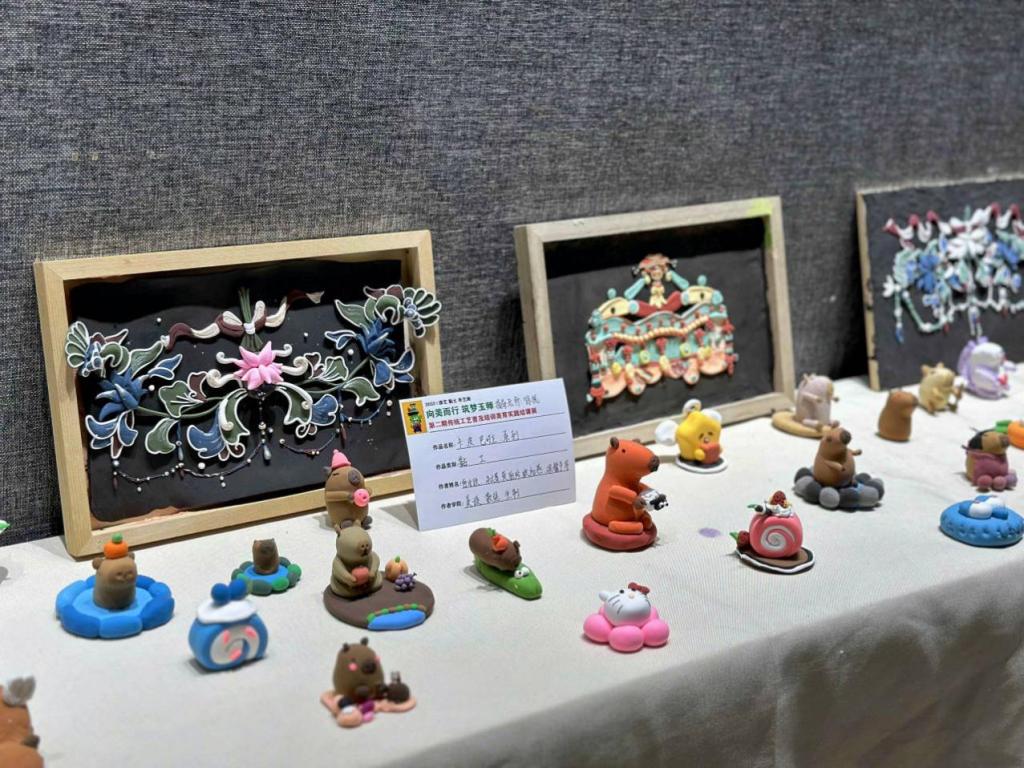 据悉,此次展出的300余作品均由在校学生利用课余时间研习完成,主要包括粘土、漆艺、布艺画三种类型的传统工艺作品,展览时间为11月1日至11月5日,展览面向广大师生和社会各界免费开放。