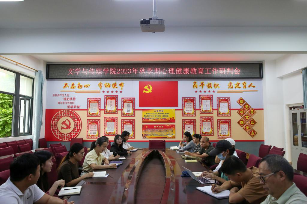 为进一步提高心理健康教育管理能力,科学把握学生心理健康状况,11月2日下午,文学与传媒学院在我校东校区至善楼206教室党员活动中心召开2023年秋季期心理健康教育工作研判会。该院党委副书记梁丹出席会议,心理健康教育与咨询中心心理辅导员、该院全体辅导员及各班班主任参加。