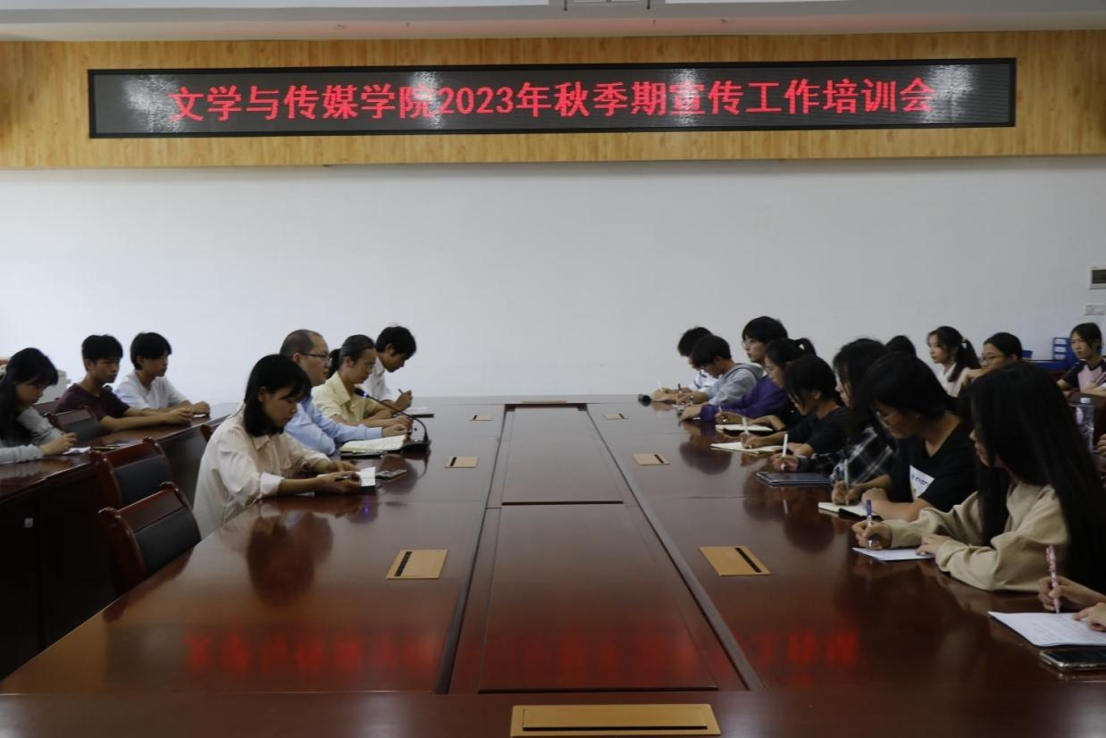 为进一步规范学院宣传工作,做好宣传队伍建设,11月7日中午,文学与传媒学院在我校东校区至善楼309会议室召开2023年秋季期宣传工作培训会。学院党委书记冯健秋,党委副书记梁丹出席会议,全媒体中心指导教师、全媒体全体成员参加会议。