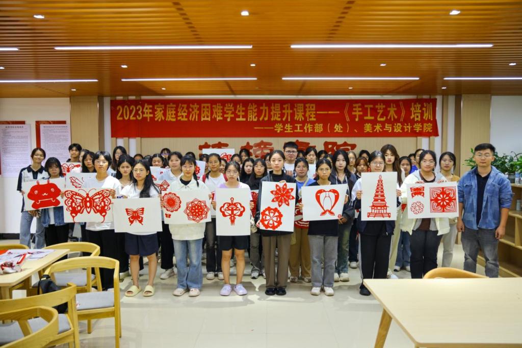 为提高我校家庭经济困难学生审美和人文素养,助力学生全方位成长成才,11月12日,完美(中国)学生资助管理中心联合美术与设计学院在我校东校区梅园社区挂榜书院开展2023年家庭经济困难学生能力提升课程(第十期)——《手工艺术》培训。培训课程分为两个专题:剪纸艺术和芒编艺术,分别由美术与设计学院学生王湘和班展源主讲,110余名家庭经济困难学生分两批次参加培训,学生资助管理中心老师、美设学院辅导员主持培训。