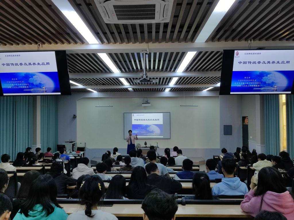 师宝萍以一个问题“什么是中国香”开始本场讲座,她介绍中国香四个方面的含义:香是一种气和味、是一类物质、是一种灵性、更是一种美誉。随后,她讲述中国有丰富多样的天然香材,包含矿物香、动物香及植物香等,中国香材数量大、种类多、分布广,最多的是植物香料,有3600多种。中国的香材不仅多,而且使用方法多样,人们将香与养生结合起来,用于防疫、助眠、提神、解郁等。