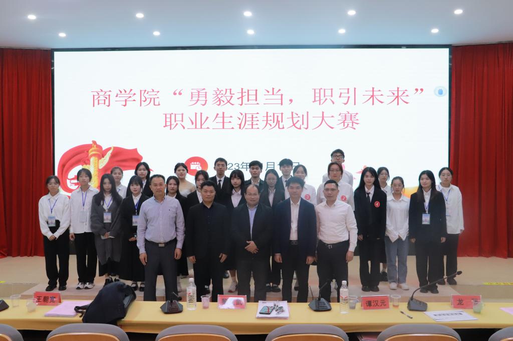 11月19日,商学院于我校东校区清源楼A106教室举办“创+文化节”之“勇毅担当,职引未来”职业生涯规划大赛。此次大赛特邀锦绣前程教育集团副总经理王朝宽、广西玉林农业完美(中国)财经商贸科党支部书记兼科长谭汉元、该院党委副书记龙强及两位博士担任评委。
