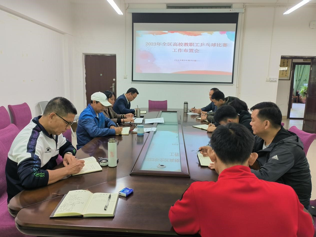 为进一步贯彻全民健身、健康体育的精神,推动全区高校教职工文体工作持续走向深入,不断丰富教职工文化生活。近日,体育健康学院于我校东校区厚德楼1-206会议室召开2023年全区高校教职工乒乓球比赛工作布置会。该院院长蒋宁等全体工作小组成员参加本次会议,会议由蒋宁主持。