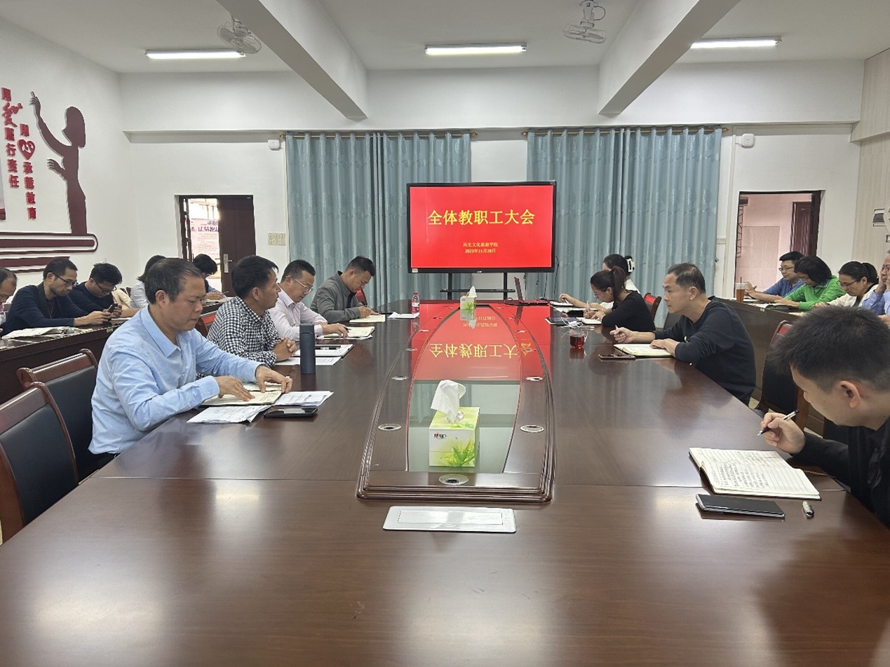 11月28日下午,历史文化旅游学院在我校东校区至善楼509会议室召开全体教职工会议,会议由该院院长宋永忠主持,全体教职工参加会议。