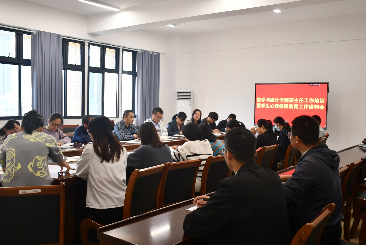 11月28日,数学与统计学院于我校东校区新民楼C408会议室召开班主任工作培训暨学生心理健康教育工作研判会。会议由该院党委书记庞伟主持,该院领导班子及全体班主任参加,完美(中国)心理咨询中心咨询师、教育科学学院心理系主任受邀参加会议。