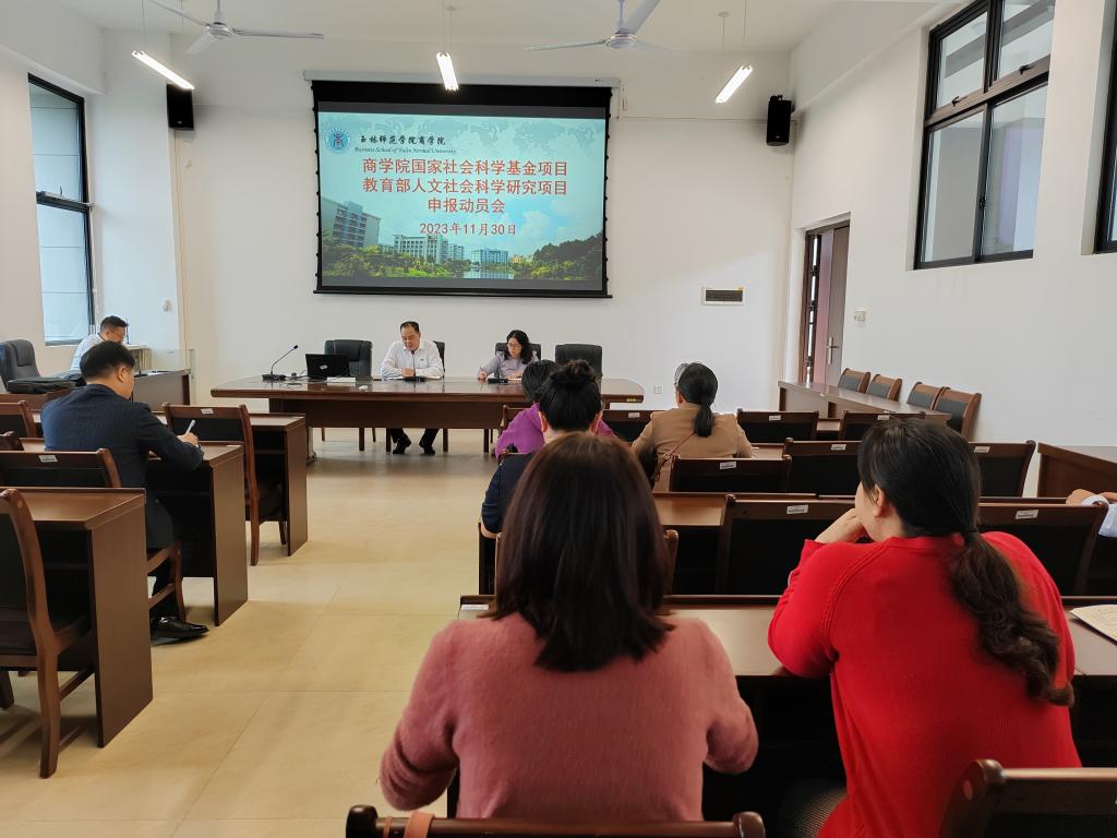 11月30日,商学院于我校东校区清源楼A217会议室召开国家社会科学基金项目教育部人文社会科学研究项目申报动员会。出席本次动员会的有该院党委书记管金标,院长段艳及部分教师职工。会议由该院科研秘书主持。
