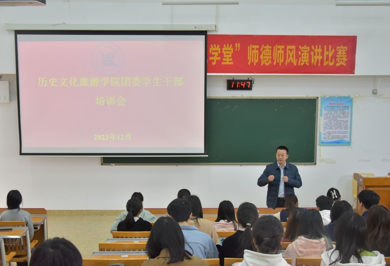 为进一步加强学生干部队伍建设,提高学生干部的综合素质和工作能力,12月1日上午,历史文化旅游学院在我校东校区至善楼408教室召开团委学生会工作培训会。该院党委书记徐小军、副书记严耀燕及辅导员代表出席本次会议,全体学生会干部参加本次培训。