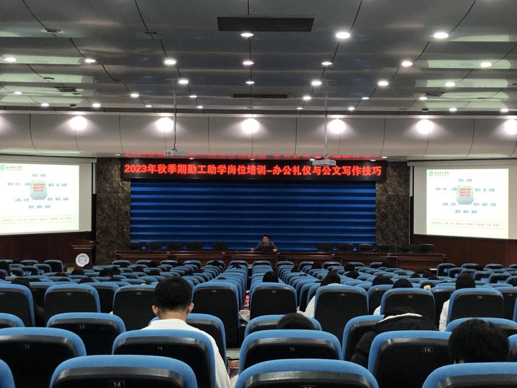 本次勤工助学岗位培训涵盖日常工作管理、公文写作技巧、办公礼仪、实验室消防安全教育等内容,旨在为学生提供学习、成长、交流的平台,将所学习的理论知识和实践结合起来,切实做到学以致用。在培训中,教师和学生积极交流,并为勤工助学学生解答了在工作中常见的一些问题和疑惑。参与培训的学生在会后纷纷表示收获颇多,不仅掌握了实用技能,对勤工助学的工作内涵也有了更深的理解。