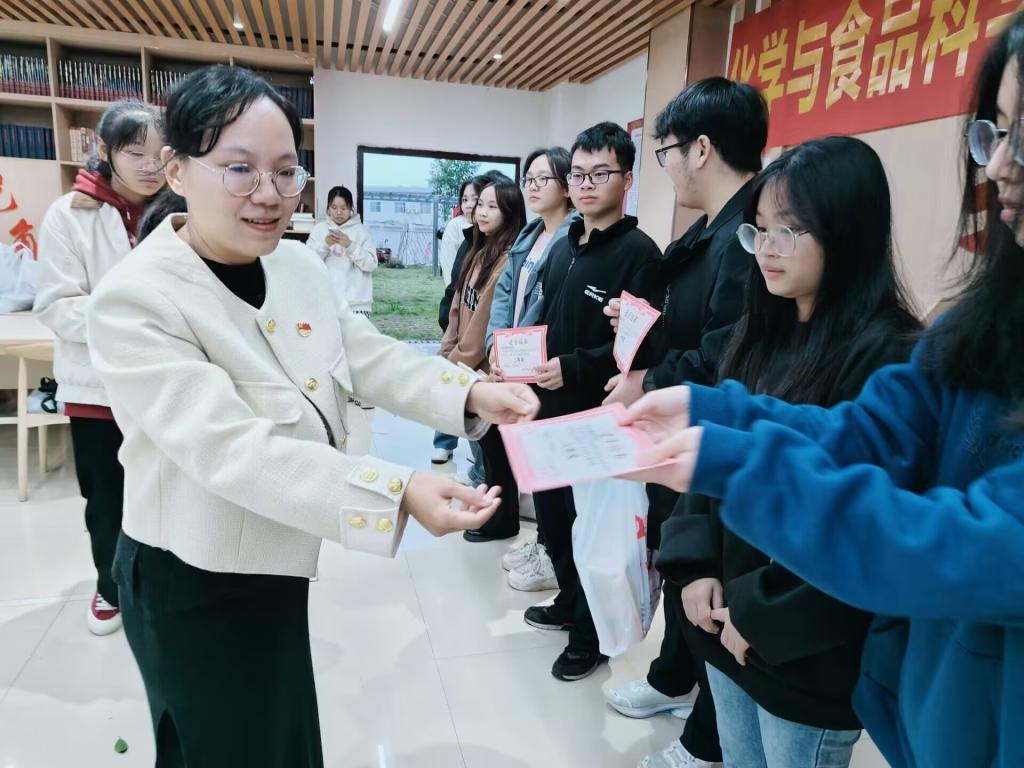为表彰在宿舍文化节中获得优异成绩的宿舍,12月5日,化学与食品科学学院于我校东校区梅园挂榜书院举行2023年宿舍文化艺术节闭幕式暨颁奖典礼。该院党委副书记刘里琳、辅导员、学生会学生宿舍管理部全体成员和全体寝室长参与此次活动。活动由该院辅导员主持。