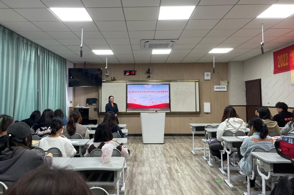 肖霞为团员们上题为“学习贯彻习近平总书记关于青年工作的重要思想”的形势政策团课,重点从“习近平关心青年的故事”“习近平论青年工作”“深入学习贯彻习近平总书记关于青年工作的重要思想”三个部分进行讲授。她提出,同学们要深刻领会习近平总书记关于青年工作的重要思想的指导意义、丰富内涵、丰硕成果,坚定理想信念,勇担时代重任,强化“功成不必在我”的境界,激发“功成必定有我”的豪迈,踔厉奋发、奋楫笃行,让青春年华在为国家、为人民的奉献中焕发出绚丽光彩。