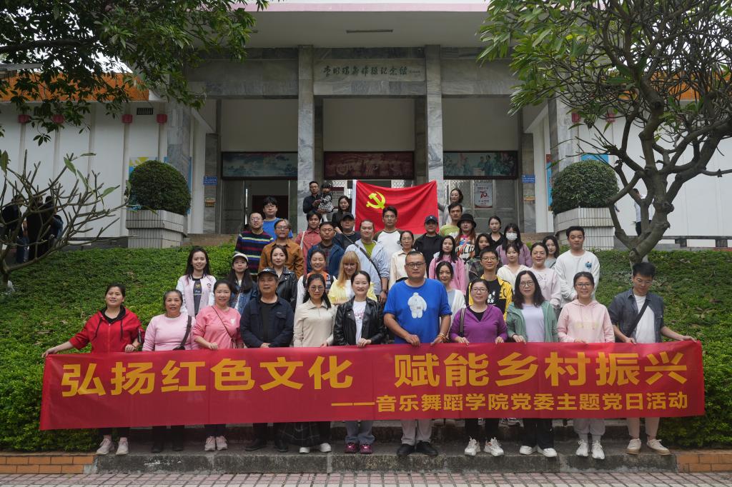 为深入学习贯彻习近平新时代中国特色社会主义思想,赓续红色血脉,汲取奋进力量,12月10日,音乐舞蹈学院赴北流市开展“弘扬红色文化,赋能乡村振兴”主题党日活动。学院党委书记肖霞、院长陈力、副院长蒋艳以及师生党员代表参加活动。