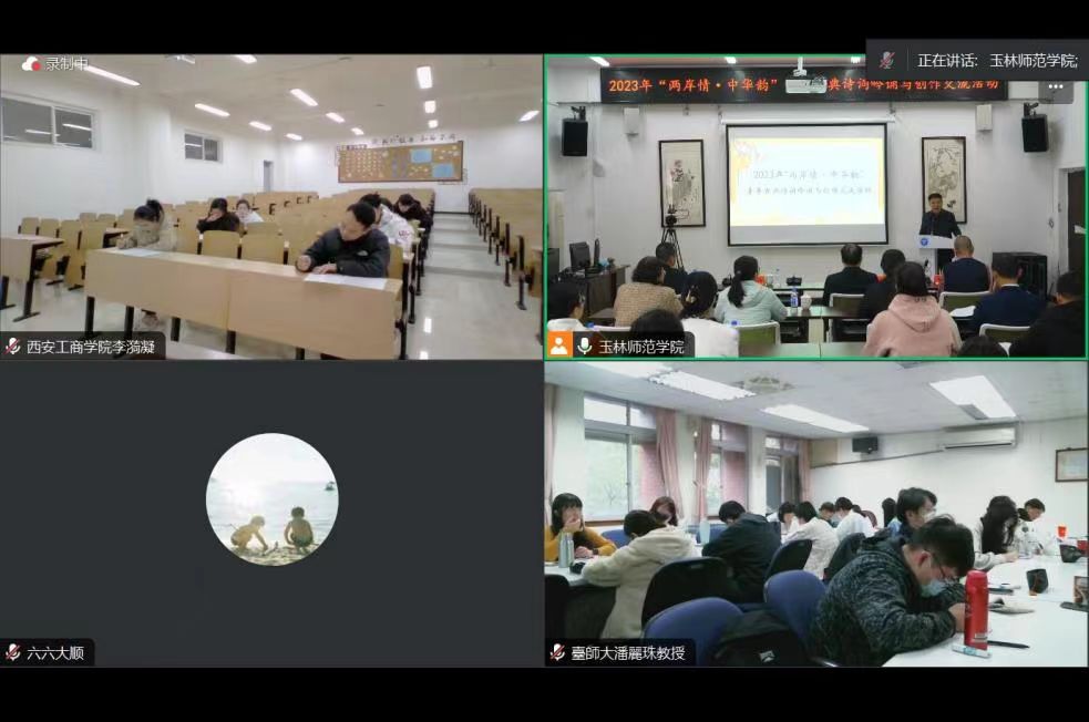 11月30日,由玉林市台办、玉林师范学院、玉林市诗词学会主办,台湾师范大学、西安工商学院协办开展的2023年“两岸情·中华韵”青年古典诗词吟诵与创作交流活动圆满开展。两岸三校青年云端相约,共襄诗词盛宴。