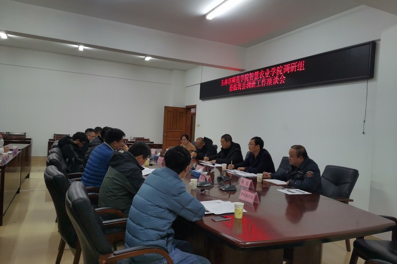 12月19日,智慧农业学院院长王道波一行5人赴兴业县人民政府开展调研和合作洽谈。兴业县县委常委、副县长赵坚、副县长刘敬、县政府办副主任梁海健以及农业农村局、乡村振兴局、发改局、财政局、水利局等部门领导参加座谈会。
