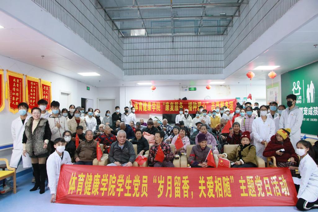 为学习弘扬中华民族传统美德,传承孝道文化,提高老年人的生活质量,推动基层党支部走进基层,贴近群众,充分发挥党员的先锋模范作用,近日,完美(中国)体育健康学院全体学生党员、康复协会部分志愿者前往玉林瑞合养老院开展党建带社团——体育健康学院学生党员“岁月留香,关爱相随”主题党日活动。活动由该院各学生党支部和康复协会联合组织开展,该院辅导员和党支部书记负责带队,共有60余人参与志愿服务活动。