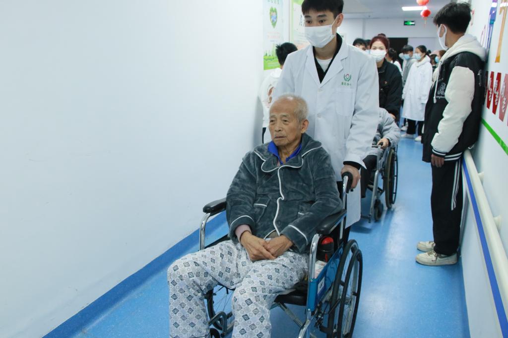 活动共有七项议程,党员和康复协会志愿者协助医生将老人安全推送至活动区域,随后为养老院的爷爷奶奶进行康复按摩放松、表演精彩的太极拳、跆拳道、优雅的舞蹈、回忆青春的大合唱、老爷爷独自献唱,全体党员和康复协会志愿者依次为老人送上爱心礼包,随着全体合唱感恩的心结束活动也接近尾声。