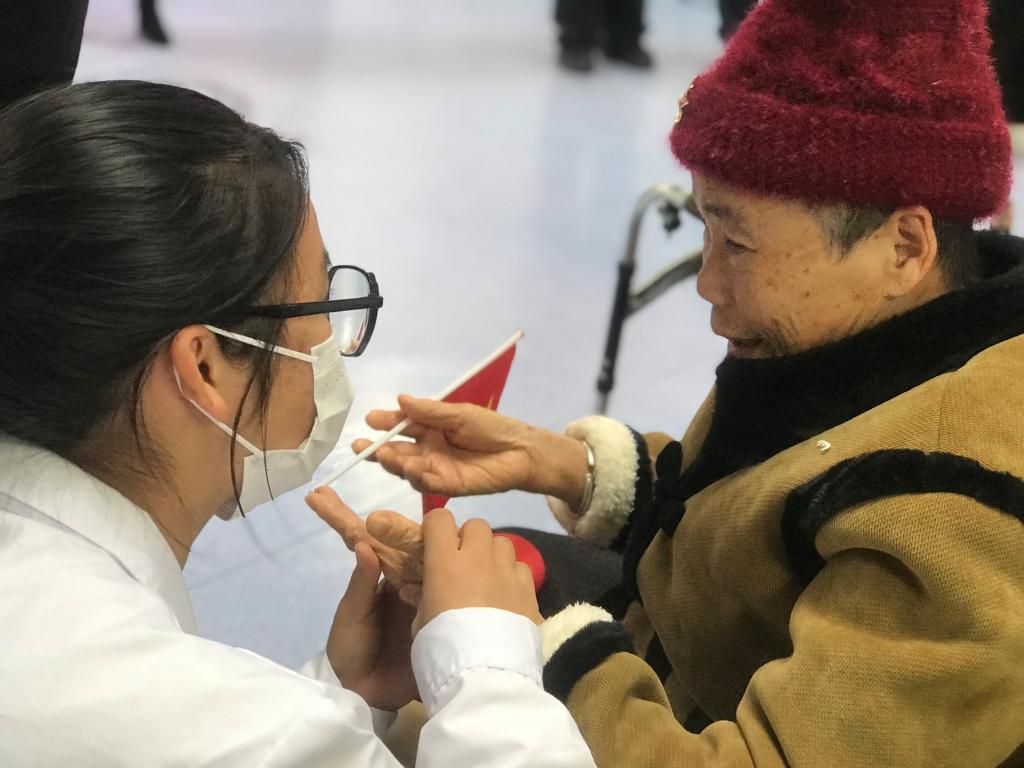 康复专业志愿者为老人按摩放松(马桂玲供图)