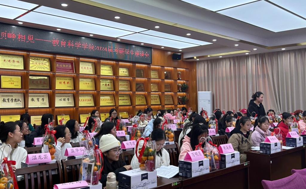为帮助考研学子振奋士气、坚定信念、做好准备,12月20日下午,教育科学学院于我校东校区明德楼310会议室召开“研”途璀璨,顶峰相见——教育科学学院2024届考研学生座谈会,本次座谈会由该院党委书记崔海波,院长陈庆文,党委副书记李尚芳,2024届考研学子参加,该院辅导员主持。