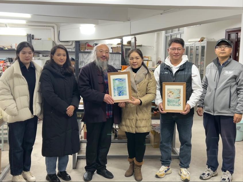 李云飞一行在该院领导和教师的陪同下到该院的玻璃工坊、陶艺工坊、漆艺工坊和芒编工作室进行参观指导,并对该院的专业特色、教师教学理念和学生创新能力予以充分的肯定和赞扬。在场学生表示,很荣幸近距离接触书画大家、聆听名家指导,受益匪浅。