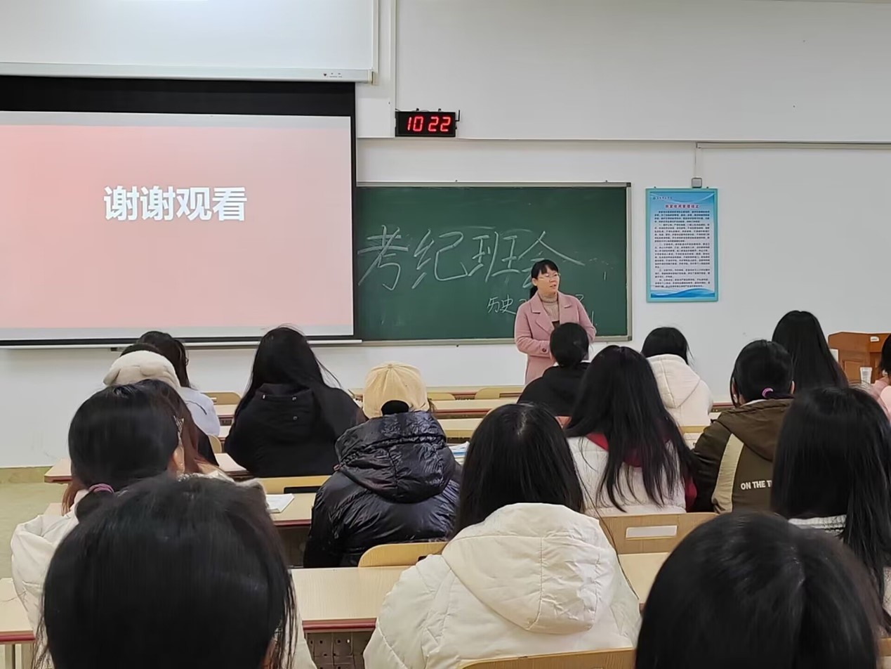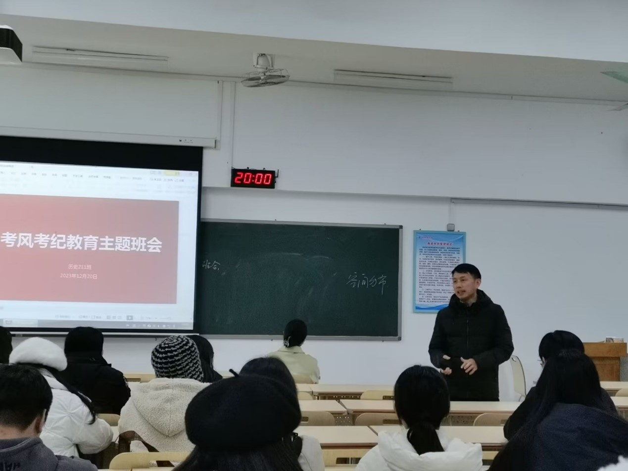 为充分发挥主题班会的育人功能,切实加强期学风考风建设以及学生安全稳定工作。12月18日至25日,历史文化旅游学院领导班子成员深入各班级参加以期末考风考纪教育和安全稳定教育为主题的班会。