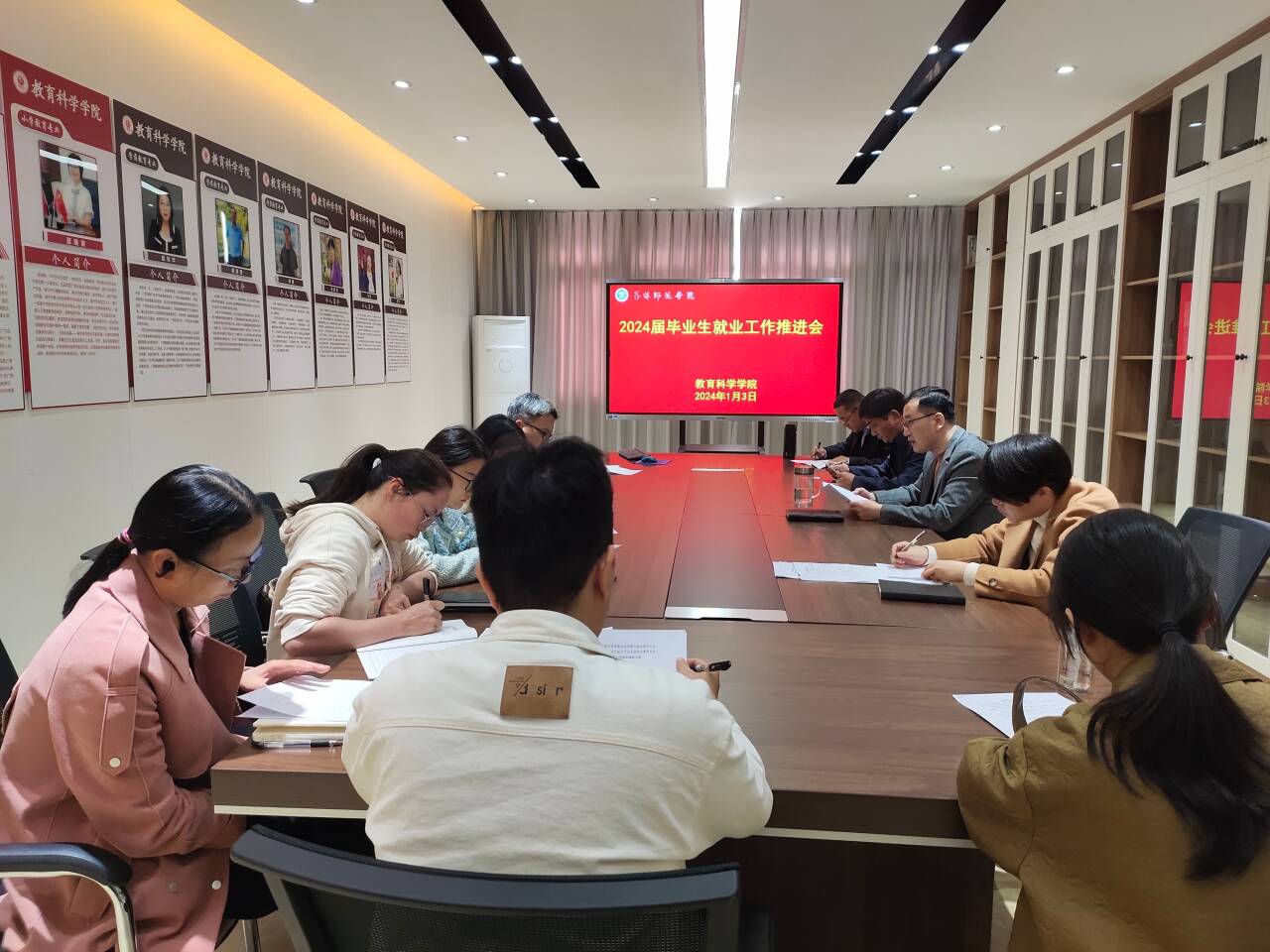 为进一步推进2024届毕业生就业工作,实现毕业生更充分和更高质量就业,1月3日,教育科学学院在我校东校区明德楼408会议室召开2024届毕业生就业工作推进会,该院领导班子成员、骨干教师、辅导员参加此次会议。