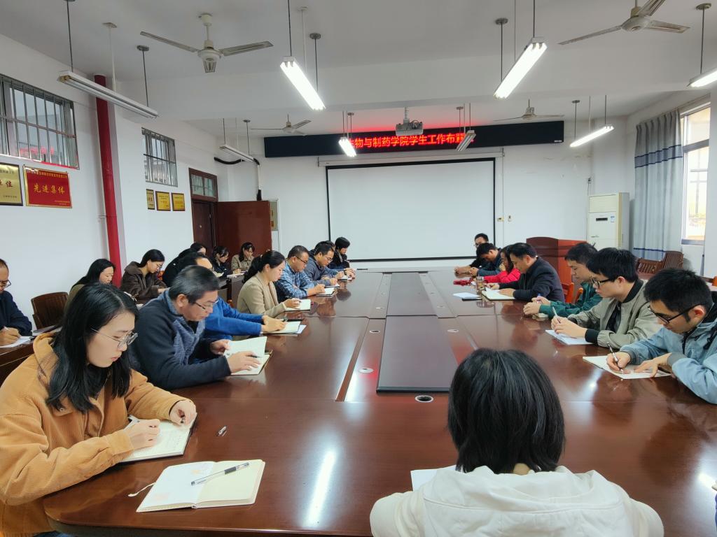 1月8日下午,生物与制药学院于我校东校区格物楼BA405会议室召开学生工作布置会,会议由该院党委书记李国庆主持,全体辅导员、班主任出席。