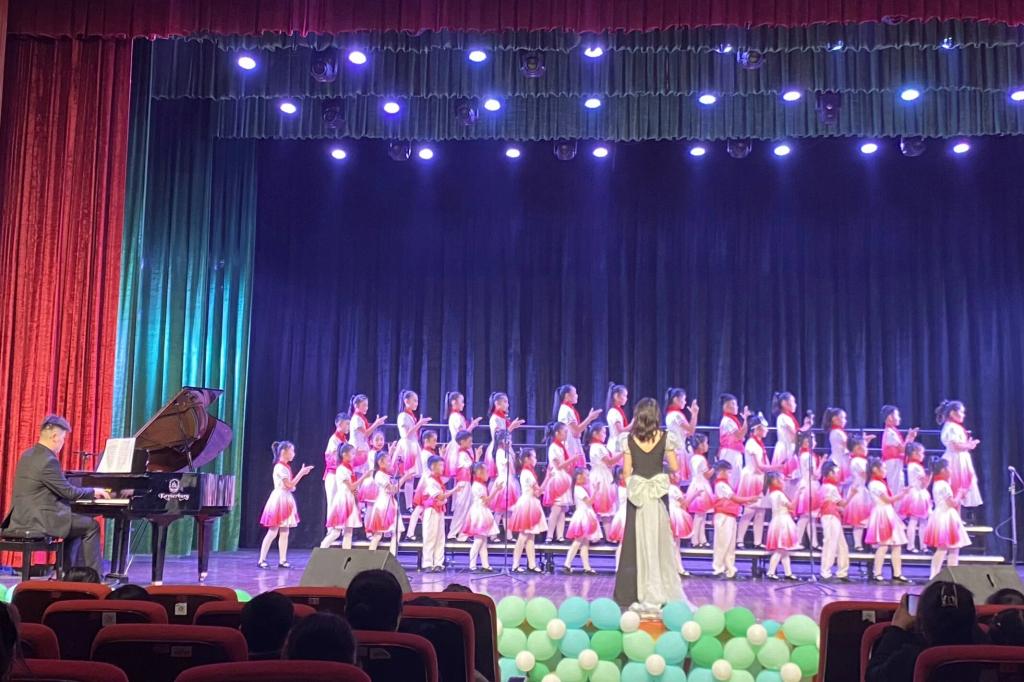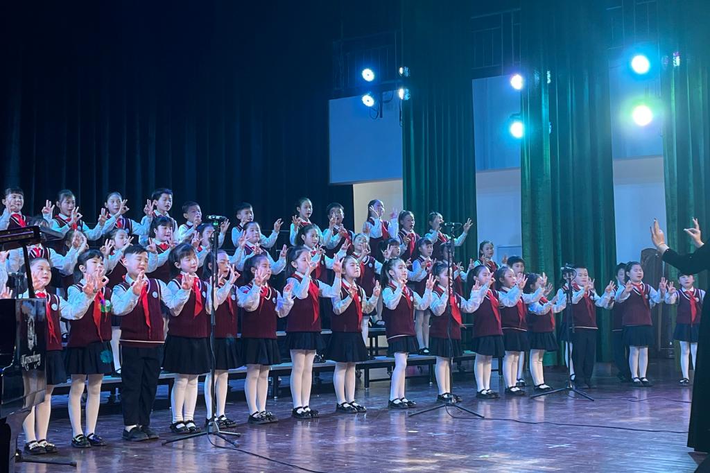 三场合唱音乐会充分发挥双方优势,该院实习生负责指挥和钢琴伴奏,三所小学的童声合唱团进行演唱,双方默契配合,联袂献上一曲曲经典曲目,精彩的表演赢得了现场的阵阵掌声。