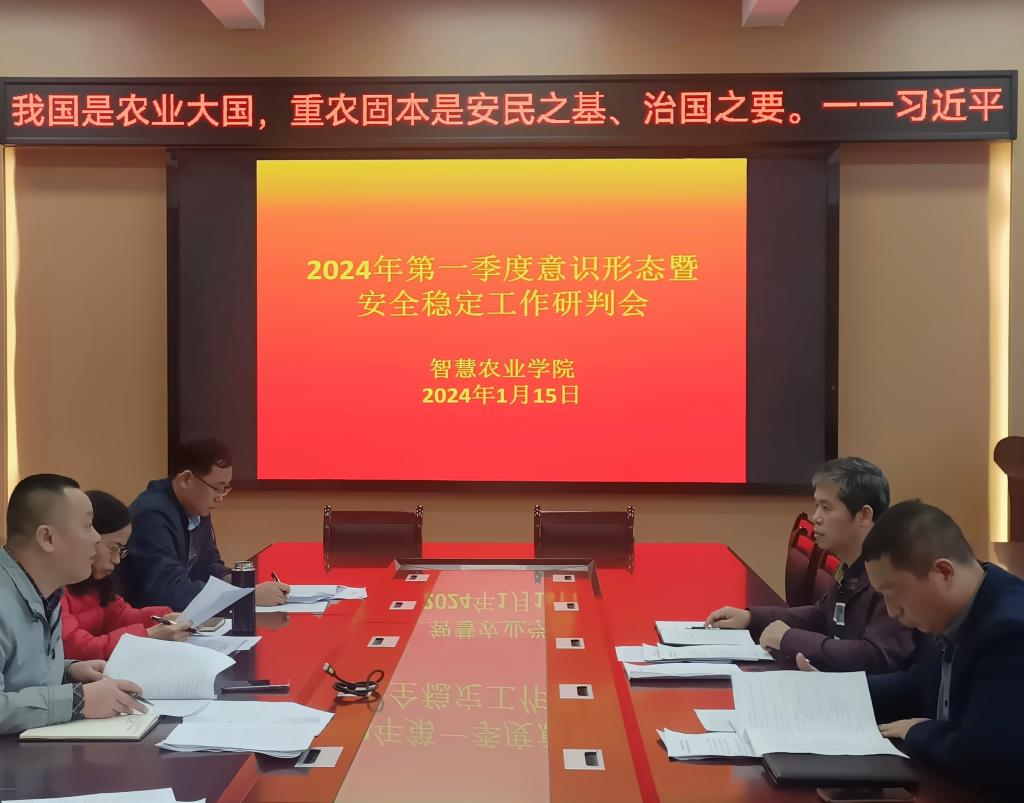 1月15日上午,智慧农业学院在该院会议室召开2024年第一季度意识形态暨安全稳定工作研判会,该院党委书记梁修杰及学院领导班子全体成员参加会议。