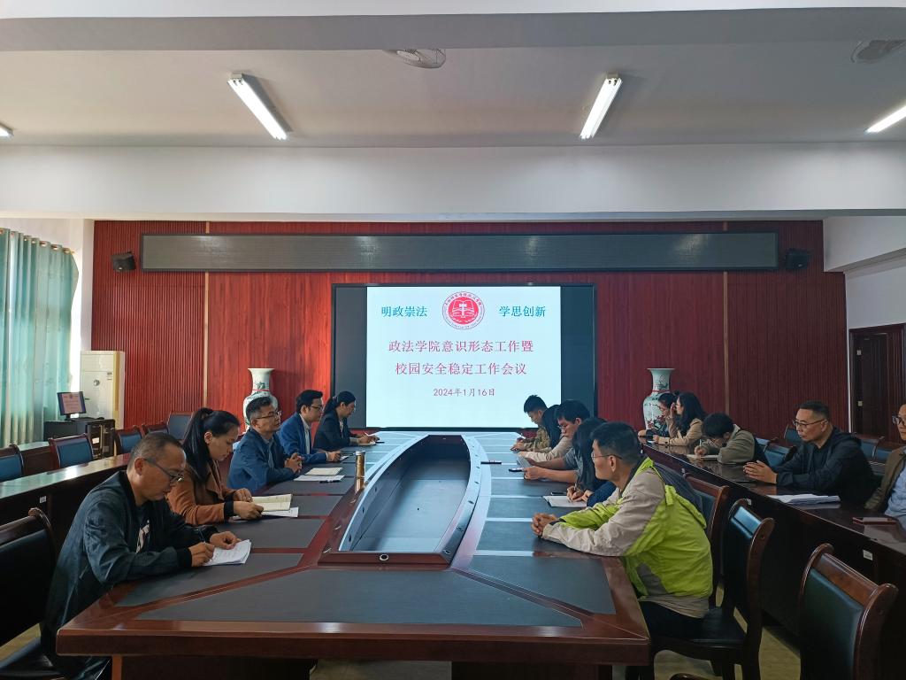 1月16日上午,政法学院于我校东校区明德楼508会议室召开意识形态工作暨校园安全稳定工作会议,该院党委书记陈一栋、院长周伟萌、党委副书记黄燕纳、副院长姚靖、朱顺以及全体辅导员和班主任参加会议。