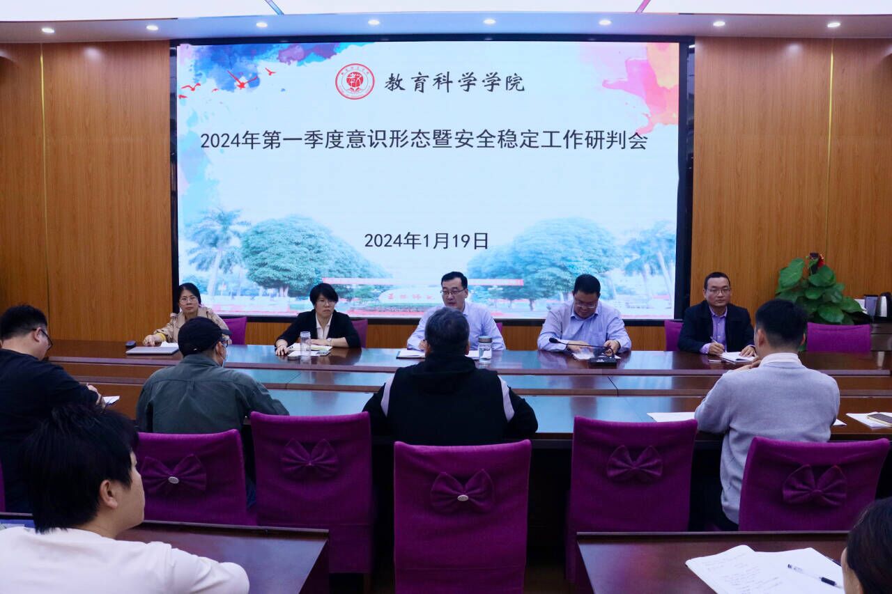 1月19日,教育科学学院在我校东校区明德楼310会议室召开2024年第一季度意识形态暨安全稳定工作研判会,学院领导班子成员,全体教师参加此次会议。