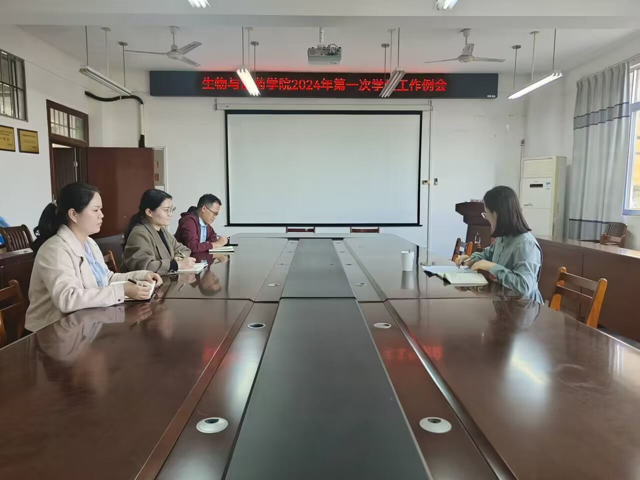 1月19日下午,生物与制药学院于我校东校区格物楼BA405会议室召开2024年第一次学生工作例会,该院党委副书记张琴、全体辅导员参加会议。