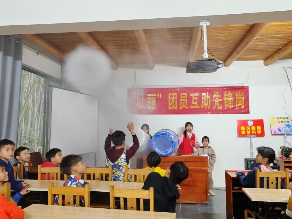 为进一步加强青少年对科学知识的了解与认知,进而成为推动乡村振兴、科技进步和发展的一股新生力量。“壮丽”团员互助先锋岗的成员们以动手科普实验为课堂主形式,依次对空气炮、乒乓球机关枪、水火箭进行讲解和实验。