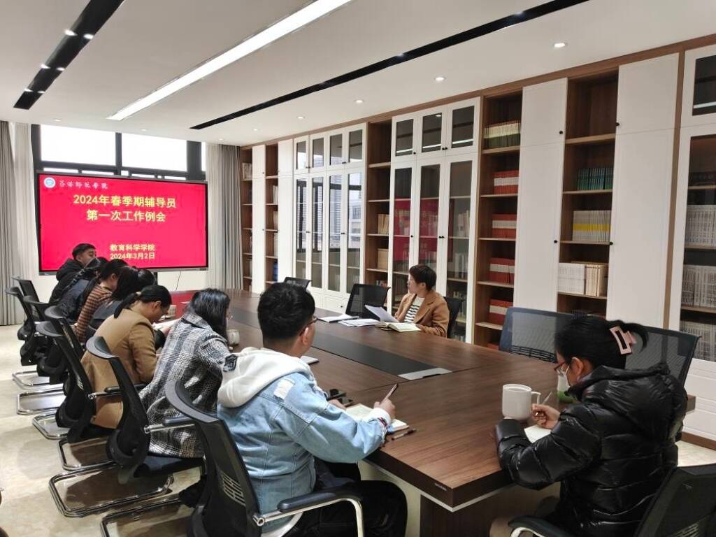 3月2日,教育科学学院于我校东校区明德楼408会议室召开2024年春季期辅导员第一次工作例会,会议由该院党委副书记李尚芳主持,全体辅导员参加此次会议。