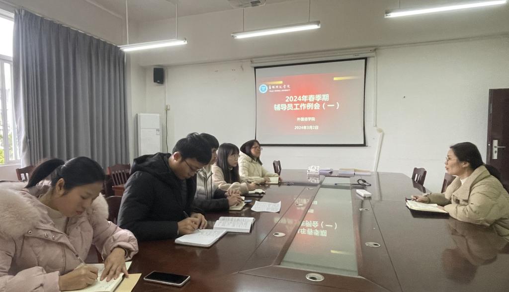 为确保开学各项工作有序进行,3月2日,外国语学院在东校区厚德楼1-306会议室召开2024年春季期辅导员工作例会,该院党委副书记、副院长梁丁丁主持会议,全体辅导员参加。