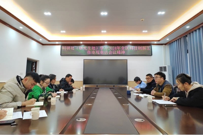 罗志辉带领与会人员学习2024年全区科技创新工作电视电话会议精神,他表示作为科研服务口的工作者,应该紧抓“尖峰计划”“核心技术”“创新平台”“企业主体”等关键词,加强关键核心技术攻关,强化创新平台建设,要将科学技术转化落实到团队,推动我校科技创新事业发展。