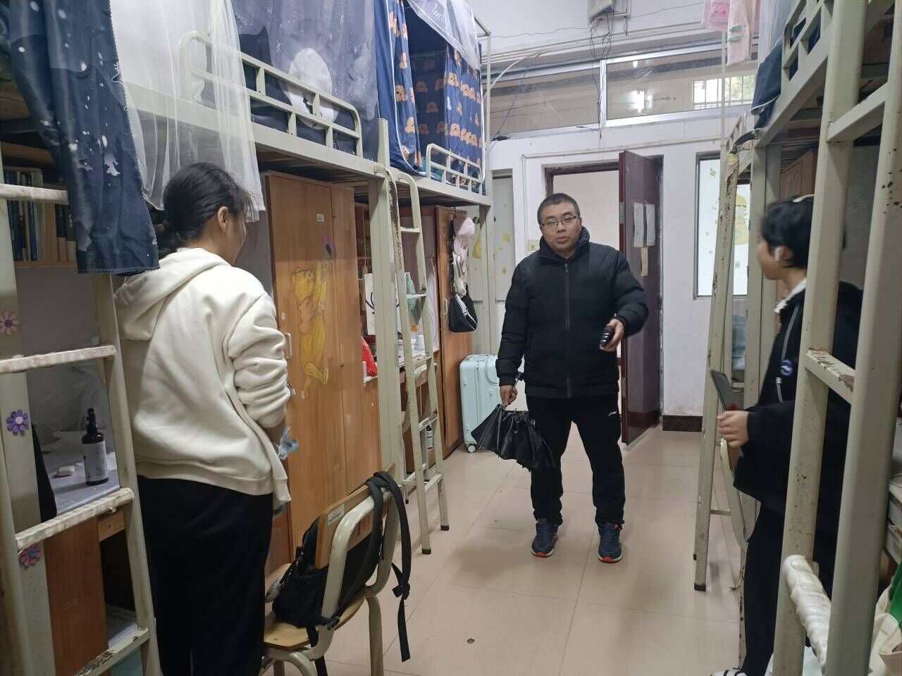 此外,学院领导与辅导员还检查了宿舍卫生状况,排查了宿舍安全隐患,叮嘱学生提高安全防范和自律意识,安全用电,保持宿舍内务干净整洁,营造更加安全、文明、舒适的学习生活环境。(作者/黎冰冰 杨莉 孙馨怡 刘宝玉)