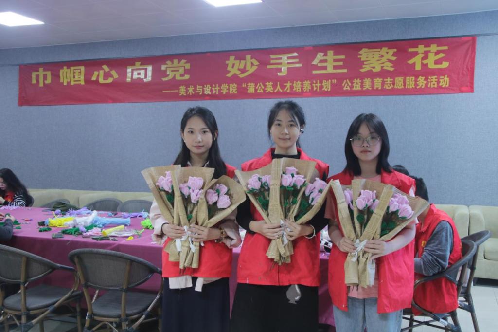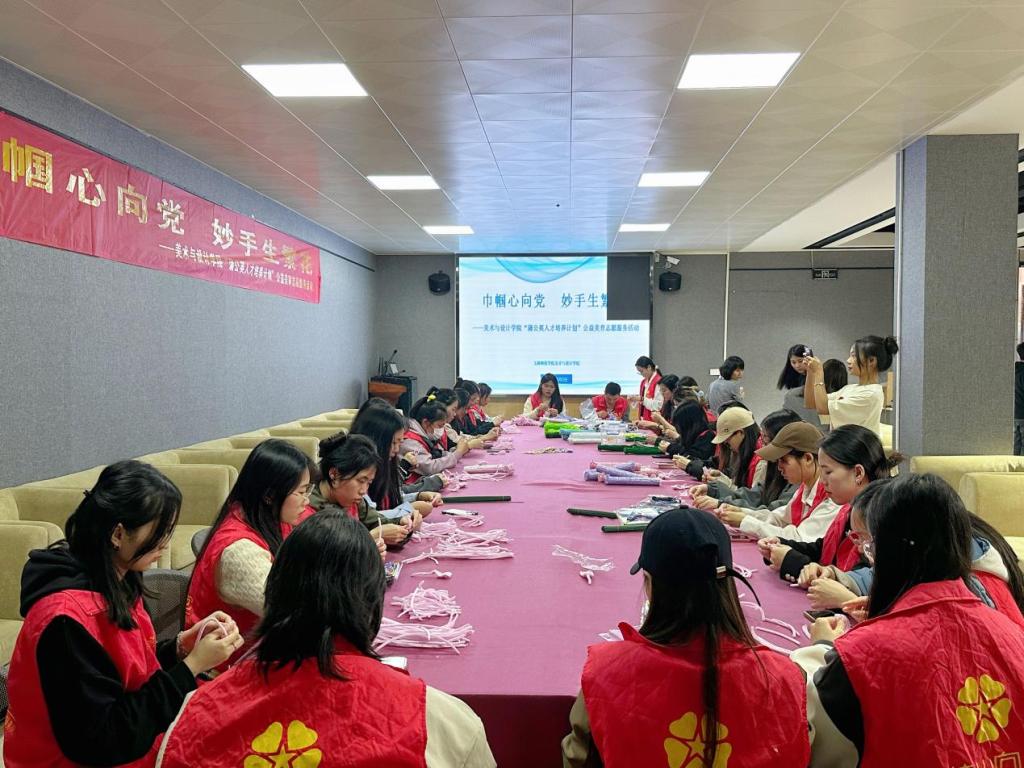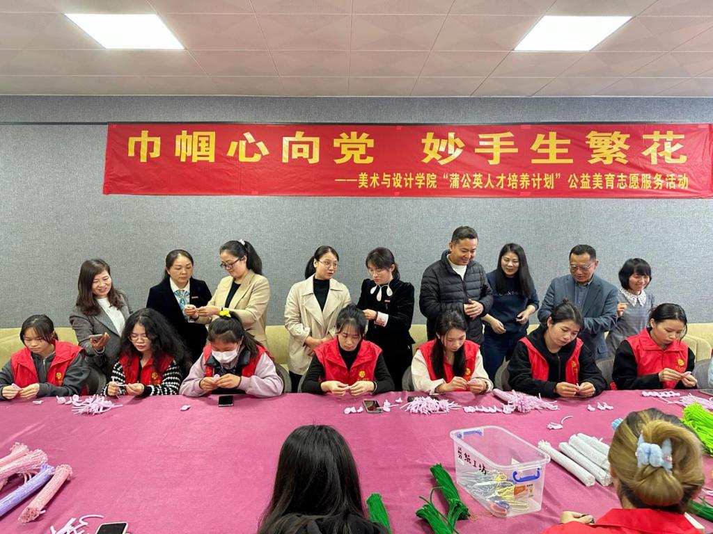 为弘扬志愿服务精神,3月5日下午,美术与设计学院于我校东校区综合实训楼会议室开展“巾帼心向党 妙手生繁花”——2024年“蒲公英人才培养计划”公益美育志愿服务活动,校团委书记范良辰、学工处副处长文丽,该院党委书记黄培英等领导班子成员,教师代表以及学生党员志愿者参加本次活动。